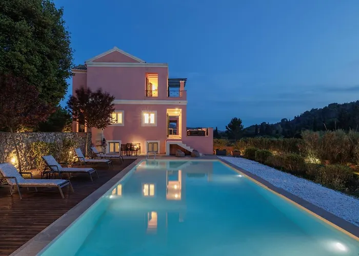 La Luxury Villa Perla dispone di una macchina per caffè e tè, un frigo e utensili da cucina in una cucina completamente attrezzata. Questa villa è inoltre situata a 15 minuti di auto dall'aeroporto Internazionale di Corfù Ioannis Kapodistrias. Gli ospiti possono noleggiare biciclette e auto per esplorare l'area locale, mentre in loco è presente anche una piscina privata.